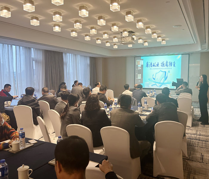 廉潔從業(yè)培訓(xùn)邀請(qǐng)行業(yè)知名律師事務(wù)所孔律師進(jìn)行分享和講解,緊緊圍繞建設(shè)工程領(lǐng)域刑事合規(guī)及法律風(fēng)險(xiǎn)防控,通過列舉同業(yè)及本條線工作中的典型實(shí)例,對(duì)問題多發(fā)點(diǎn)和潛在風(fēng)險(xiǎn)點(diǎn)多角度、有針對(duì)性地進(jìn)行講解和推進(jìn)警示預(yù)防,進(jìn)一步增強(qiáng)了各版塊各崗位管理人員的廉潔從業(yè)意識(shí)。