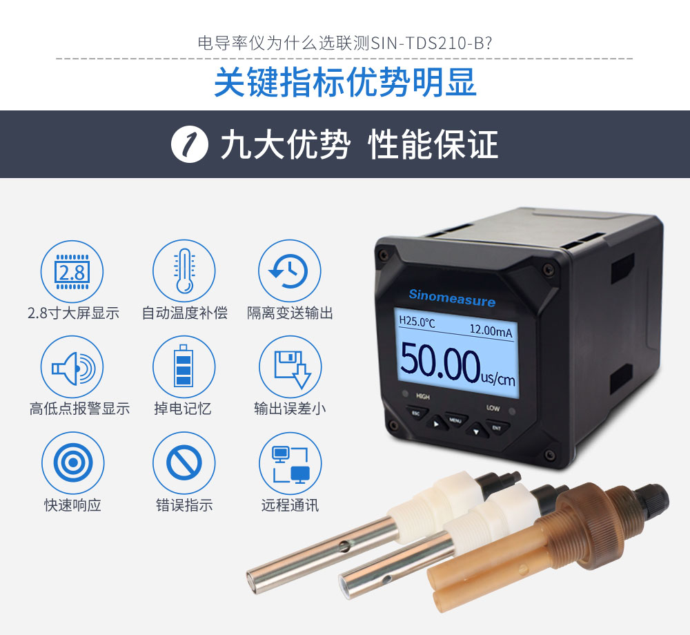 SIN-TDS210工業(yè)電導率儀表,可對各種工業(yè)用水的電導率(TDS)值進行連續(xù)測量和控制,本裝置廣泛應用于科學實驗裝備、化工、制藥、環(huán)保、冶金、造紙、食品、飲料及供水等行業(yè)。根據(jù)水工業(yè)的環(huán)境和特點結(jié)合國際供電標準,考慮了特殊環(huán)境的電氣設計規(guī)范,增加了220VAC供電。