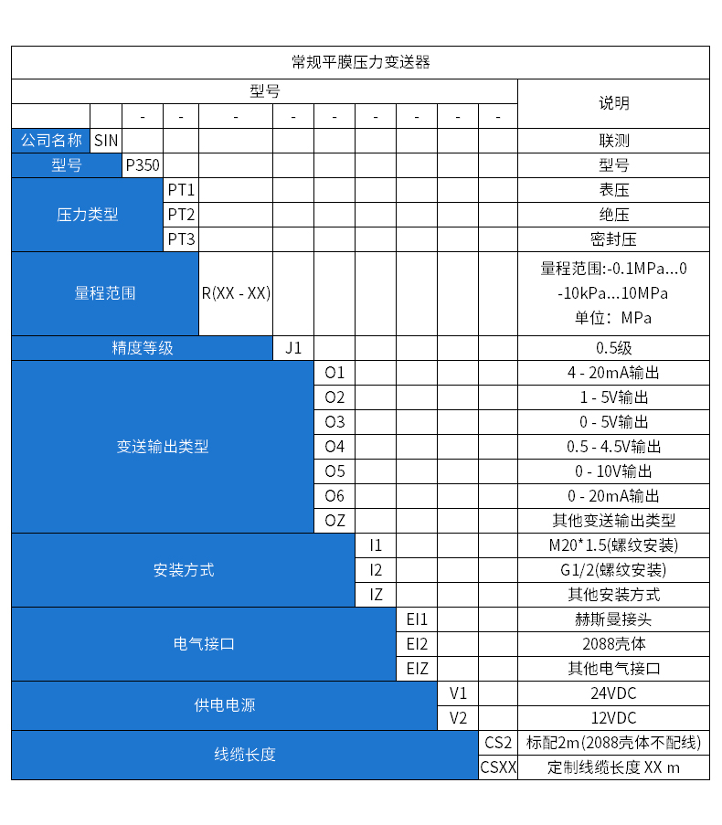 SIN-P350系列平面膜結構壓力變送器采用平面膜直接感受壓力。傳感器接口有卡箍式,M27×2,法蘭式可供選擇。輸出信號有電壓、電流、頻率信號等可選擇,傳感器平膜片防止了結垢,不衛生及粘稠液體堵塞等問題。廣泛應用于食品、醫藥、衛生及釀酒工業等部門。